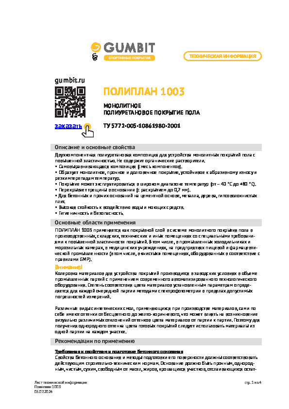 Полиплан 1003 разрешается наносить на поверхности пола в жилых, общественных и производственных помещениях. Полиуретановая композиция устойчива к температурным перепадам, поэтому ей можно обрабатывать напольные покрытия в холодильных и морозильных камерах.