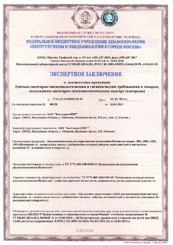 Самовыравнивающаяся полиуретановая композиция. Предназначена для устройства дезактивируемых монолитных напольных покрытий на объектах атомной энергетики.